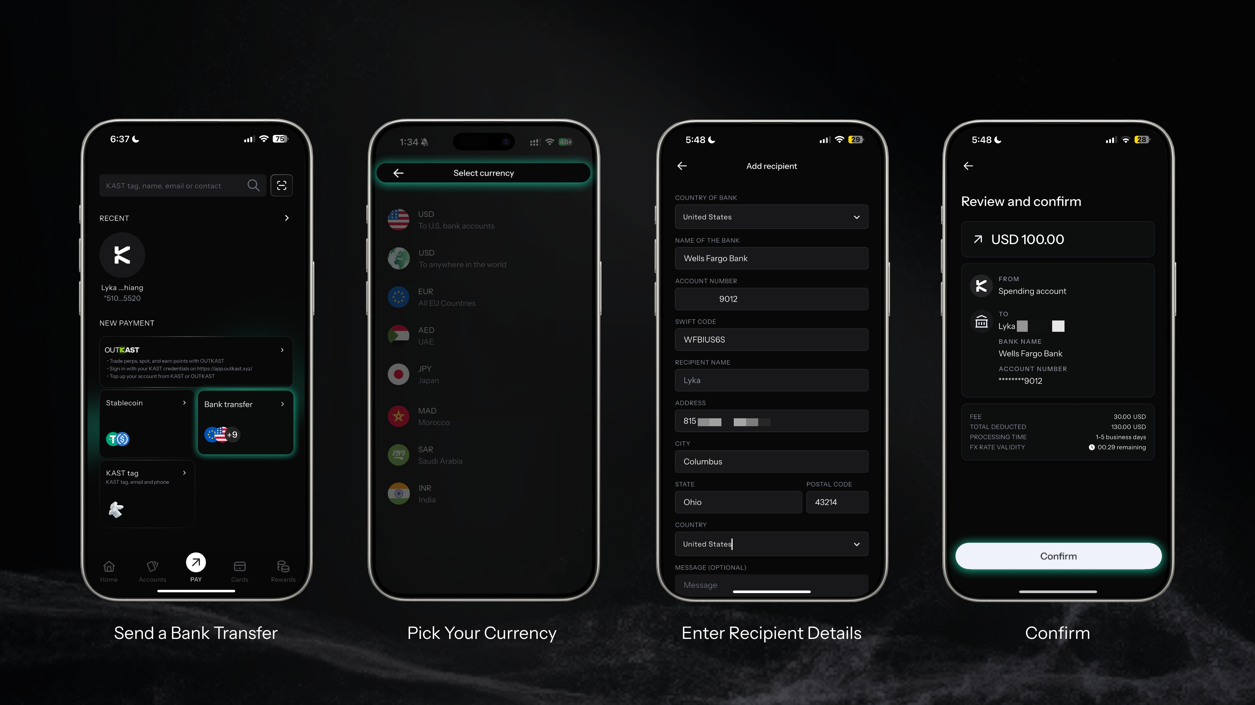 - Send a Bank Transfer - Send your funds directly from your KAST account.