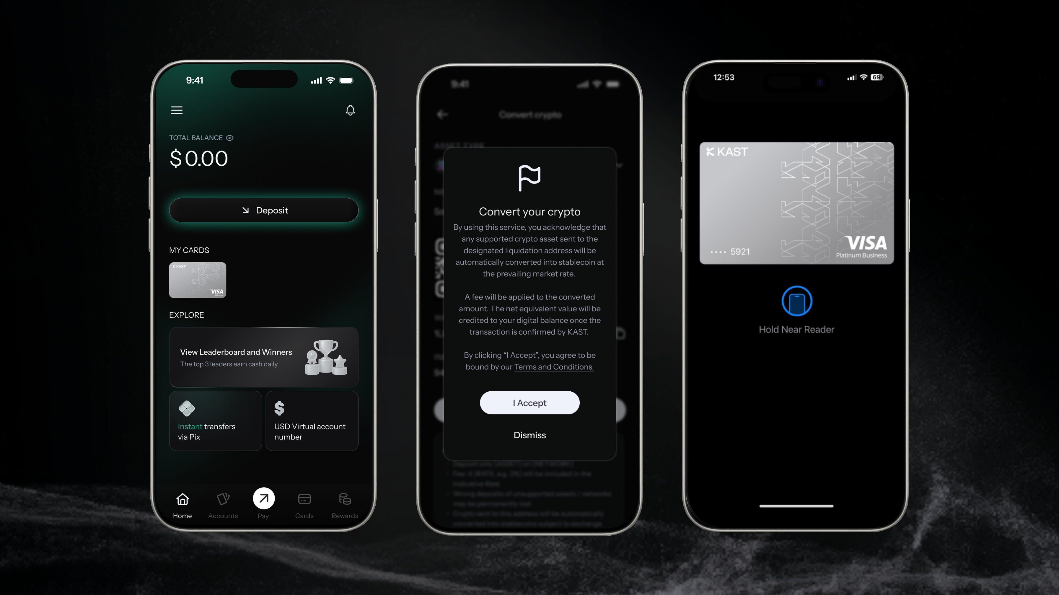 You can now use your crypto to pay for everyday needs in Brazil - from your morning coffee to a night out. With KAST, you send your crypto, it automatically converts to stablecoins, and you can spend instantly anywhere using your KAST Card, Mobile Wallets, or the latest PIX integration.