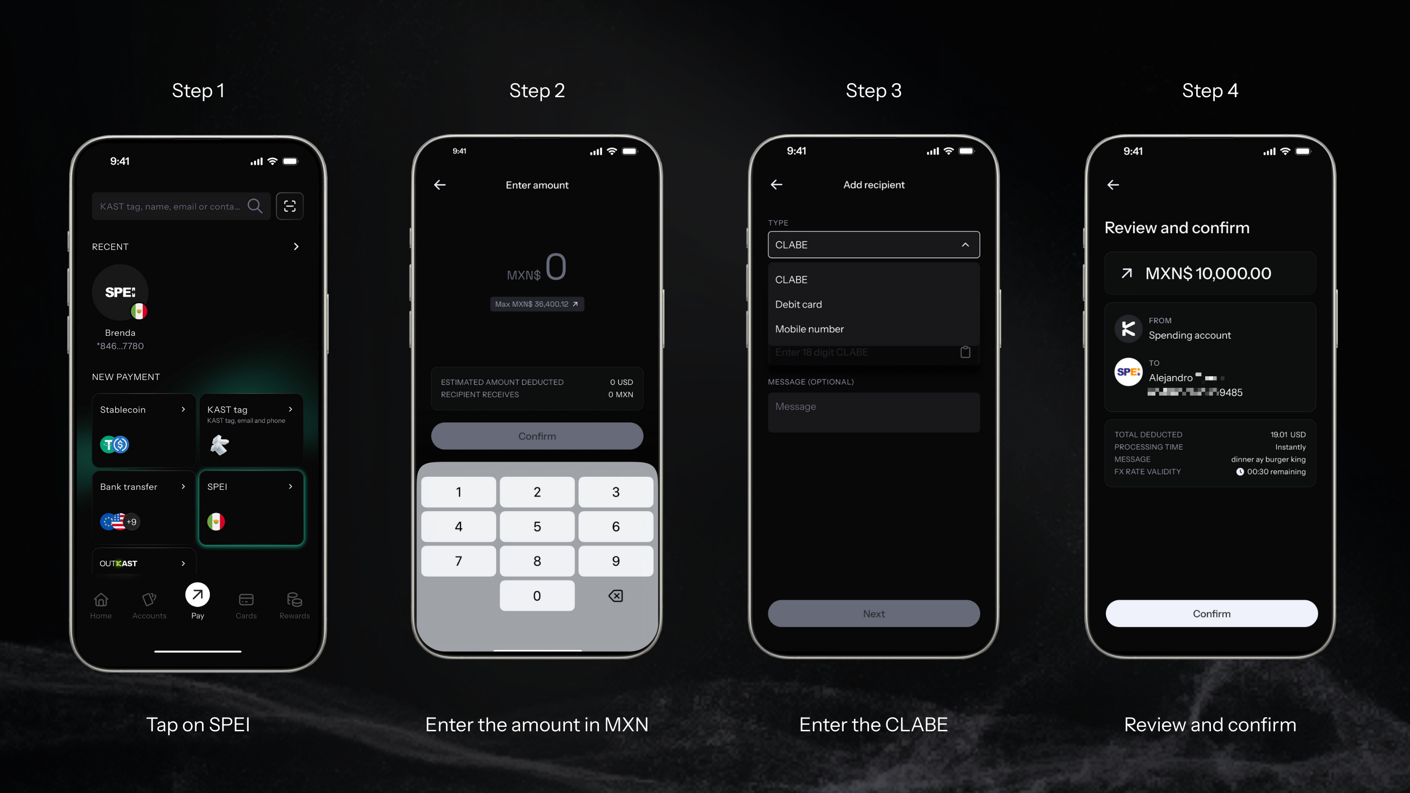 With SPEI on KAST, moving between pesos and dollars is finally as easy as sending a local transfer: